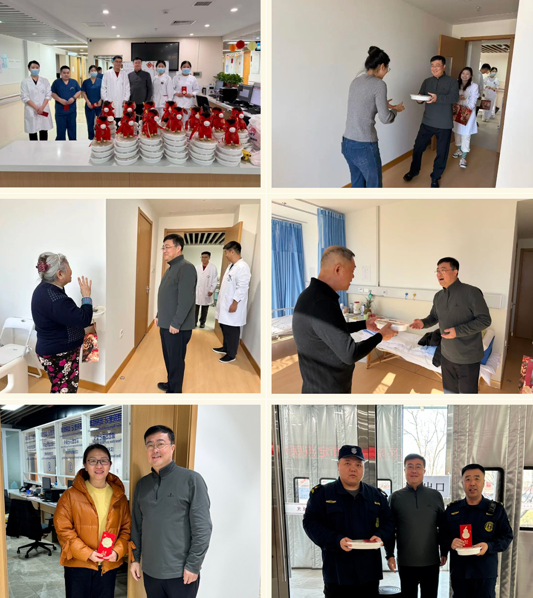 烟火辞旧岁,温情迎新春。丙午马年新春佳节,中关村科技集团旗下多家分子公司员工坚守岗位,用心用情守护患者健康、照料长者生活、保障宾客服务,以奉献精神温暖万家团圆日。集团总裁侯占军,副总裁李斌等领导分赴一线,看望慰问春节期间值班员工、住院患者及入住长者,向大家致以新春祝福,感谢大家的辛勤付出与默默守护。