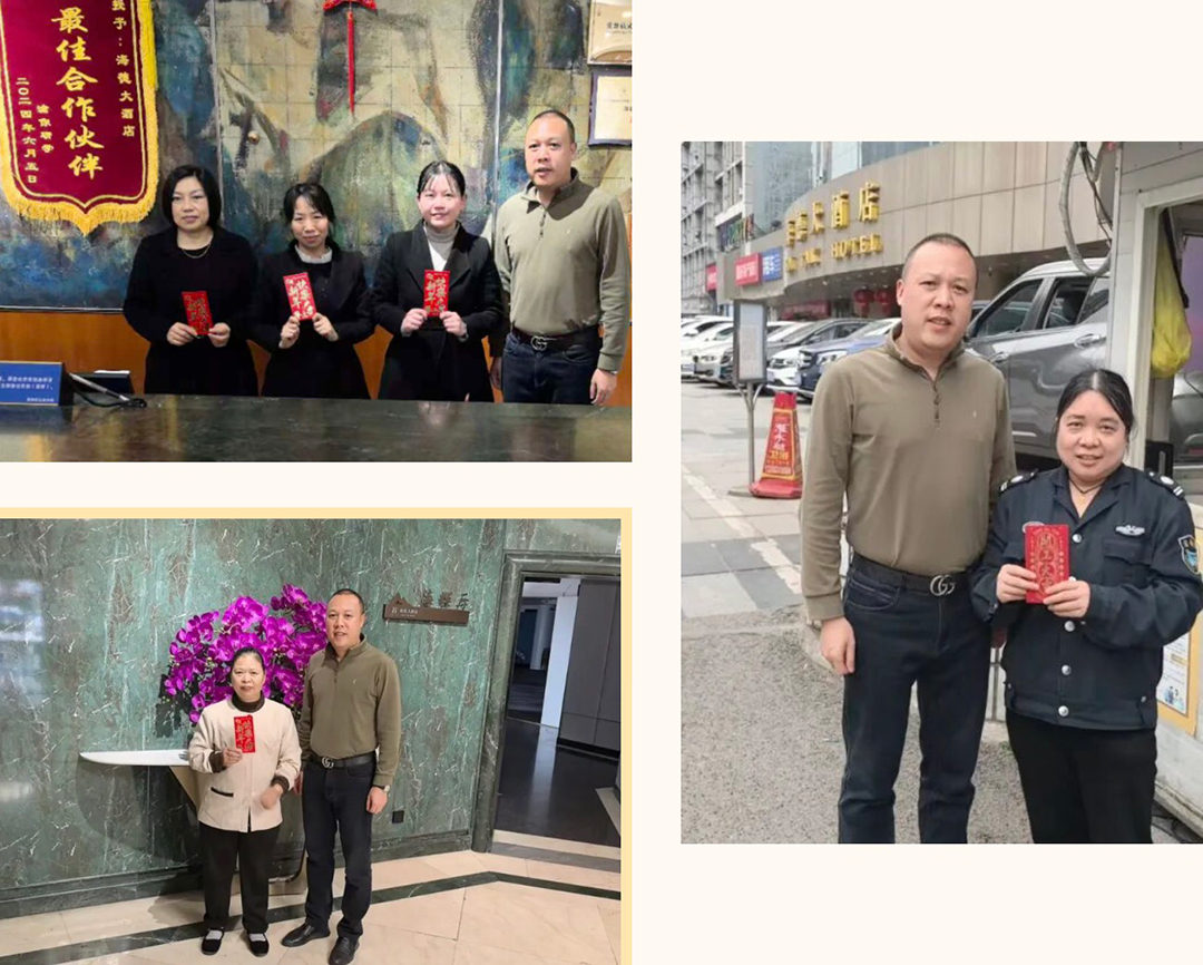 重庆海德大酒店总经理代表集团深入前台、客房、车场等岗位,慰问坚守一线的员工,送上节日红包与诚挚感谢,勉励大家用心服务、温暖相伴,确保宾客度过一个祥和温馨的新春佳节。