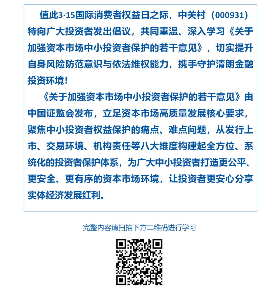 3·15投资者保护教育宣传活动|重温学习《关于加强资本市场中小投资者保护的若干意见》
